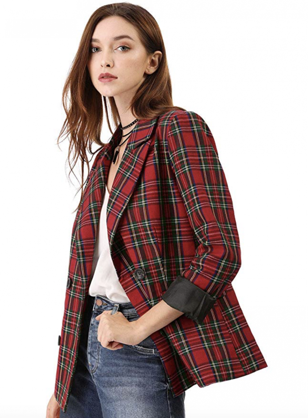 Getting Into the Holiday Spirit Wearing a Tartan Blazer and Plaid Pumps
