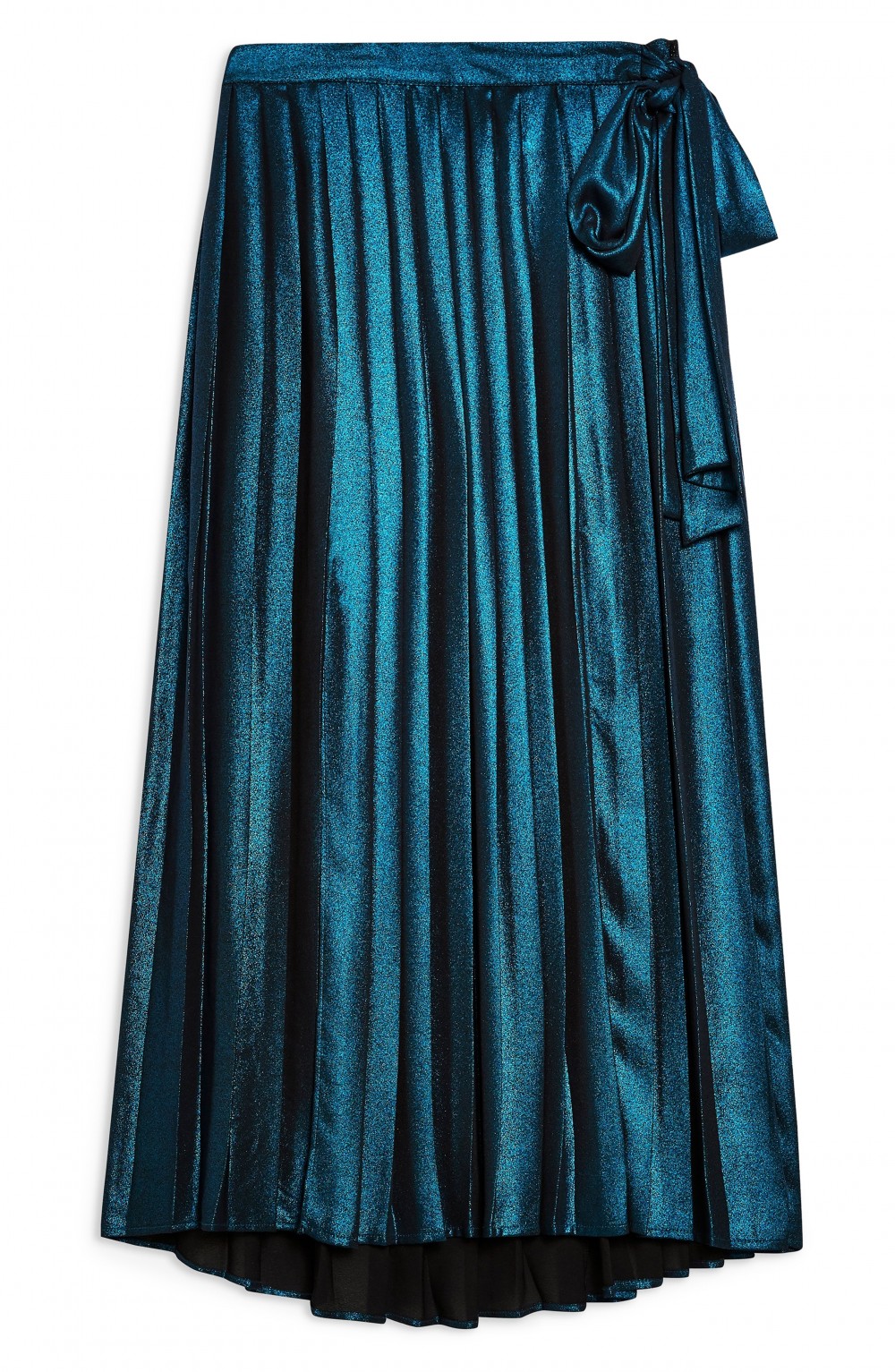 Blue Metallic Pleated Midi Skirt
